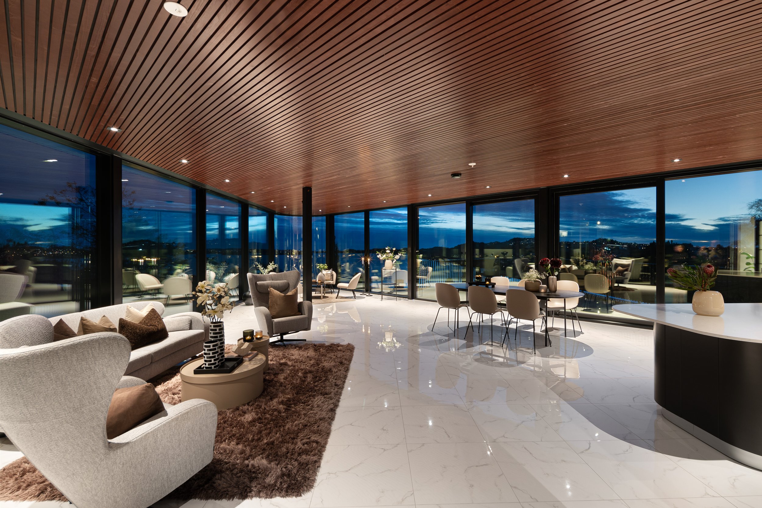 Denne boligen skiller seg ut med sitt gjennomgående organiske formspråk, som skaper et harmonisk og dynamisk uttrykk. Med egen utleiedel og en eksklusiv spa-avdeling som inkluderer basseng, jacuzzi og badstue, kombinerer boligen funksjonalitet med en følelse av hverdagsluksus.