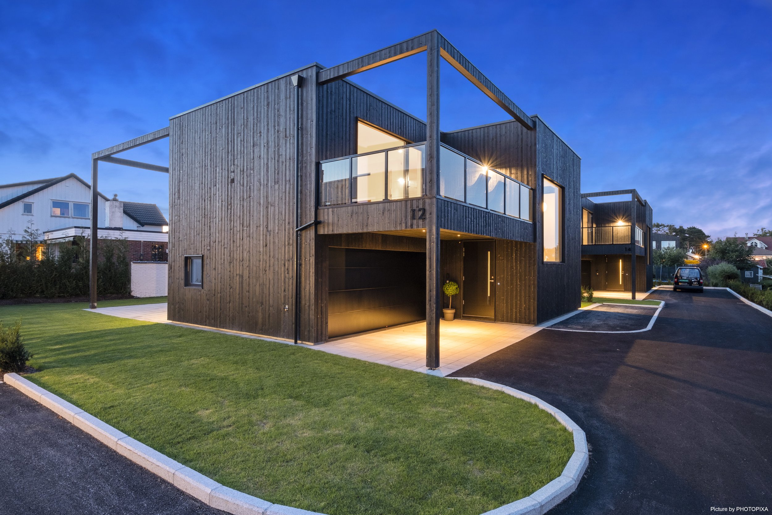 Boligprosjekt på Valuen i Stavanger, bestående av 2 eneboliger med et stramt formspråk.